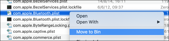 Click "Move to Bin" to delete the "com.apple.Bluetooth.plist" file.