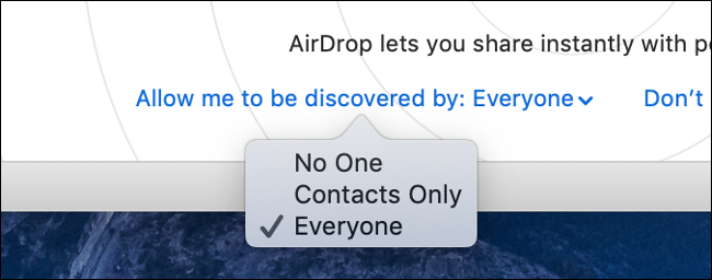 If you have trouble sending files to a Mac, adjust the visibility under Finder > AirDrop. At the bottom of the screen, click the arrow next to ;Allow Me to Be Discovered By:; and select ;Everyone; from the drop-down menu.