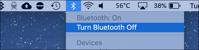 Sometimes, you just have to turn it off and on again. To do this with both Bluetooth and Wi-Fi, click the relevant icon in the menu bar at the top-right of the screen. After you turn off both Wi-Fi and Bluetooth, turn them back on, and then try again.