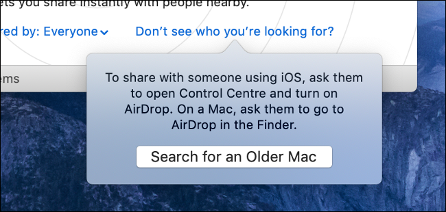 First, make sure the older Mac is visible, and the AirDrop window is open and ready to receive. On your newer Mac, head to Finder and click ;AirDrop; in the sidebar. Click ;Don7;t See Who You7;re Looking for?; at the bottom of the window, and then click ;Search for an Older Mac.;