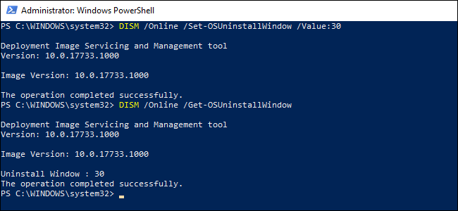 DISM/ Online/ Set-OSUninstallWindow/ Value:30