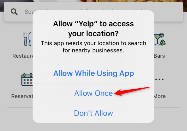 There7;s still one problem here: If you give an app access to your location once, that app can keep accessing your location over and over if you use it in the future. What if you just want to pull up a map once in an app without giving it permanent access to your location?