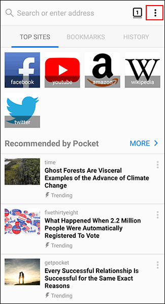Start by opening the Firefox app on your Android device and then tapping the vertical ellipsis menu icon in the top right.