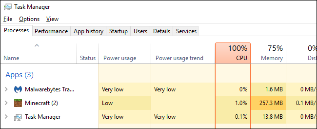 Windows 107;s Task Manager now shows you the power usage of each process on your system. This feature is new in the October 2018 Update.