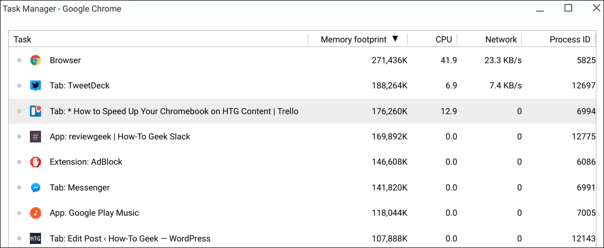 Much like a Windows computer, Chrome OS has a built-in task manager. It offers a glimpse of what your system is current doing, especially in the moment. If you7;re having sudden system issues, this is the best place to start.